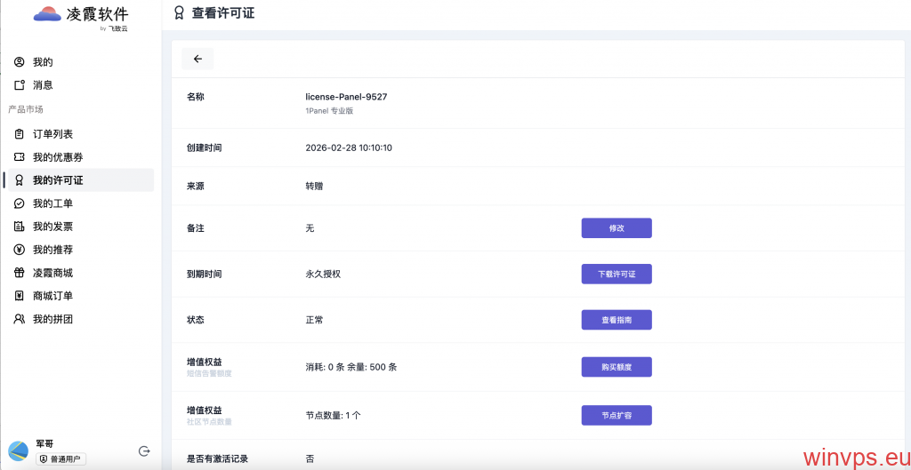 网站首页 》个人分享 》文章正文 现在终于成了高贵的 1Panel 专业版永久授权客户 军哥 2026-02-28 字数 31 加载 0.47 阅读 34 评论 0 在线 3 编辑 一直心心念念,现在终于成了高贵的 1Panel 专业版永久授权客户 购买 Google Voice 靓号 / GV 靓号 https://winvps.eu/6/ 相关推荐 VPS推荐 甲骨文 / OracleCloud 确实比较稳定 苹果 / Apple iCloud 教育版 200GB 账号简介 关于 Google 帐号存储空间的重要政策变更 Google 相册的存储空间政策变化 羊毛一:Adobe Creative Cloud两年教育优惠 耶鲁大学 / Yale University / 校友账号最多修改 30 次别名 Google Voice / GV 介绍 发表评论 取消回复昵称* Δ